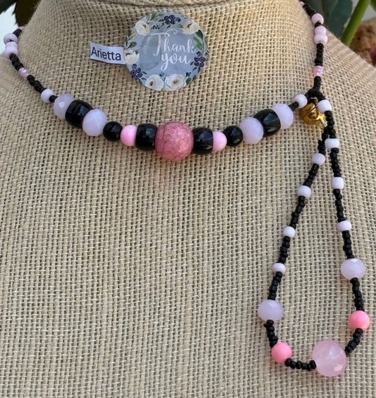 Arietta - Elegant Pink and Black Beaded Necklace and Bracelet. Handmade Perfect for any occasion, this piece is a stylish addition.