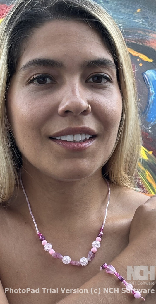 Ava - Pink Beaded Necklace Set with Tassel Each necklace is individually crafted ensuring a unique and special piece.