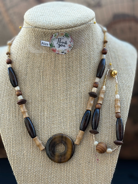 Aliza - Handcrafted Earthy Beaded Necklace and Bracelet with Magnetic Clasp