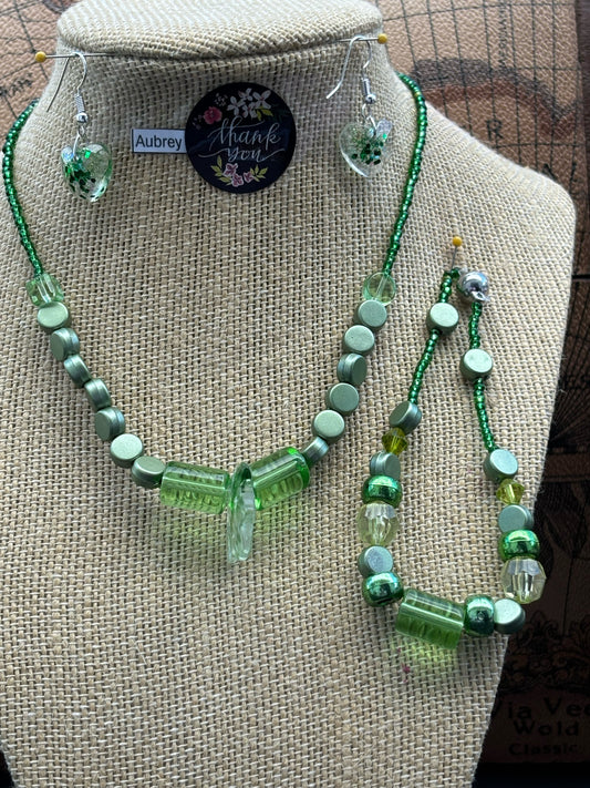 Aubrey - Emerald Elegance Stunning Green Beaded Necklace. Necklace showcases a beautiful array of greens, from deep forest to light lime.